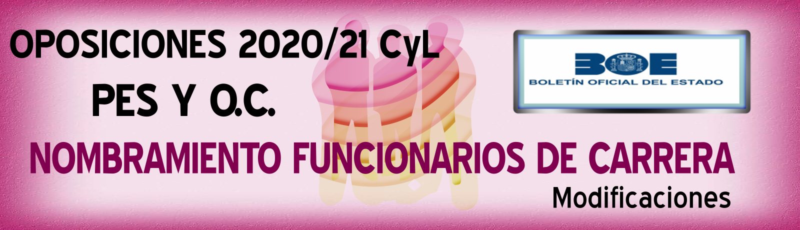 Oposiciones PES y O.C. 2020. Nombramiento como funcionarios de carrera. Modificaciones.