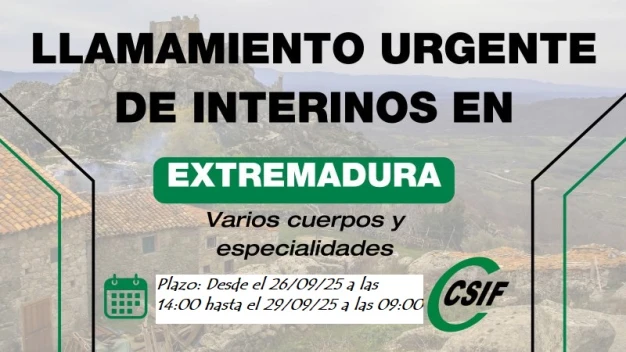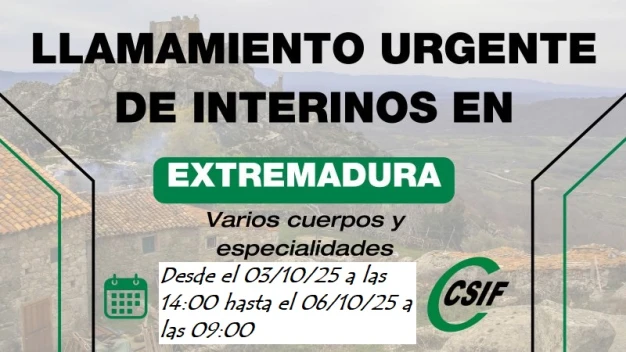 Llamamientos urgentes (17/09/2025): varios cuerpos y especialidades