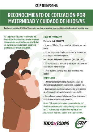 CSIF Informa. Cotización por maternidad y cuidados. LGSS
