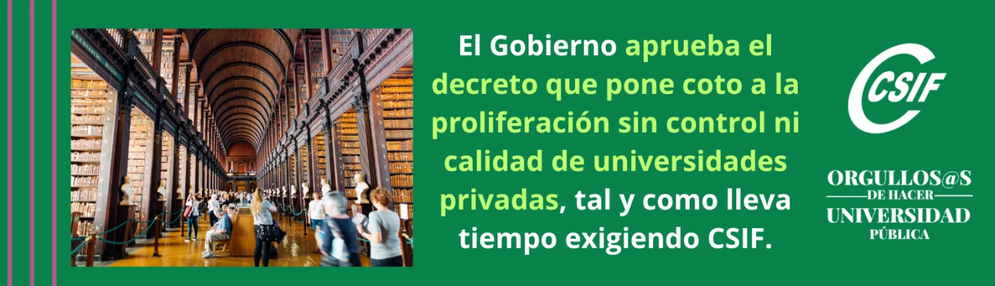 El Gobierno aprueba el decreto que pone coto a la proliferación sin control ni calidad de universidades privadas, tal y como lleva tiempo exigiendo CSIF.