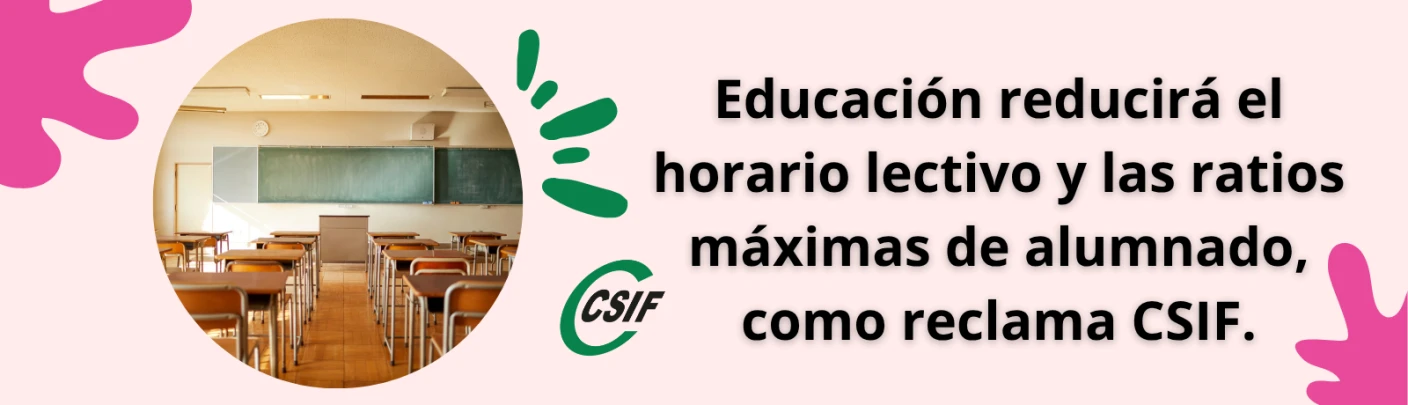 Educación reducirá el horario lectivo y las ratios máximas de alumnado, como reclama CSIF.