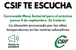 MS 4-9-2025.-Convocatoria mesa sectorial para tratar la situación provocada por las altas temperaturas en los centros educativos