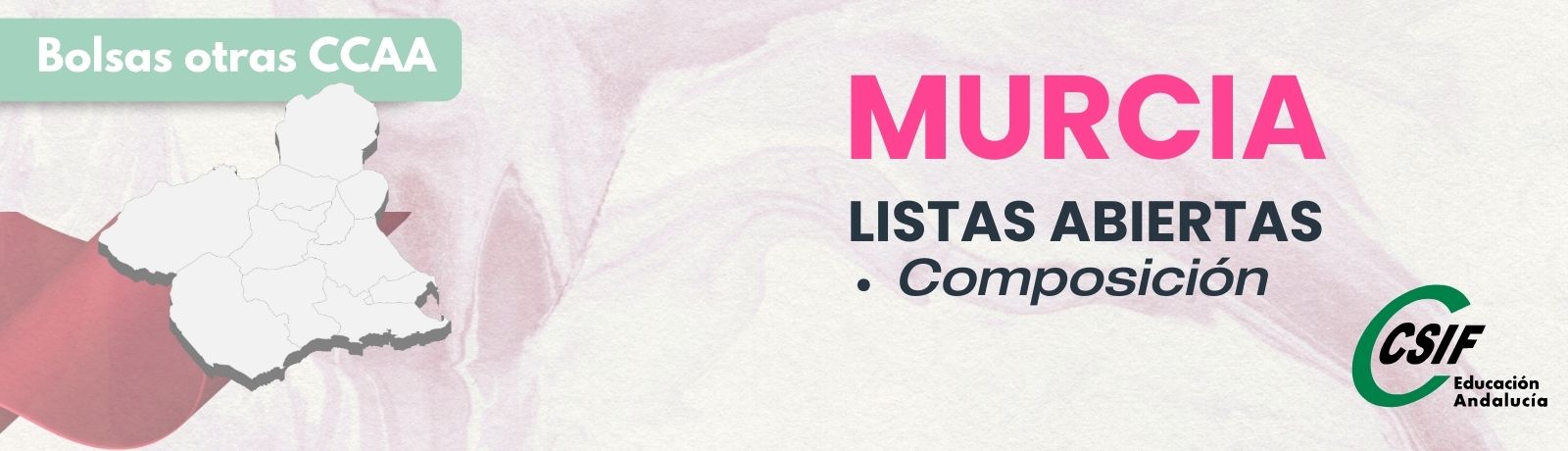 La Consejería de Educación y Formación Profesional de la Región de Murcia ha declarado abierta la especialidad de Composición (593010) (Cuerpo de Profesores de Música y Artes Escénicas) dentro del procedimiento de cobertura urgente de puestos docentes mediante “listas abiertas”.