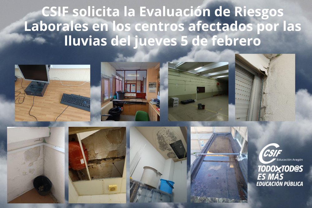Desde CSIF hemos solicitado al Servicio de Prevención de la Administración General y Educación que realice una Evaluación de Riesgos Laborales en todos aquellos centros que presenten daños similares.