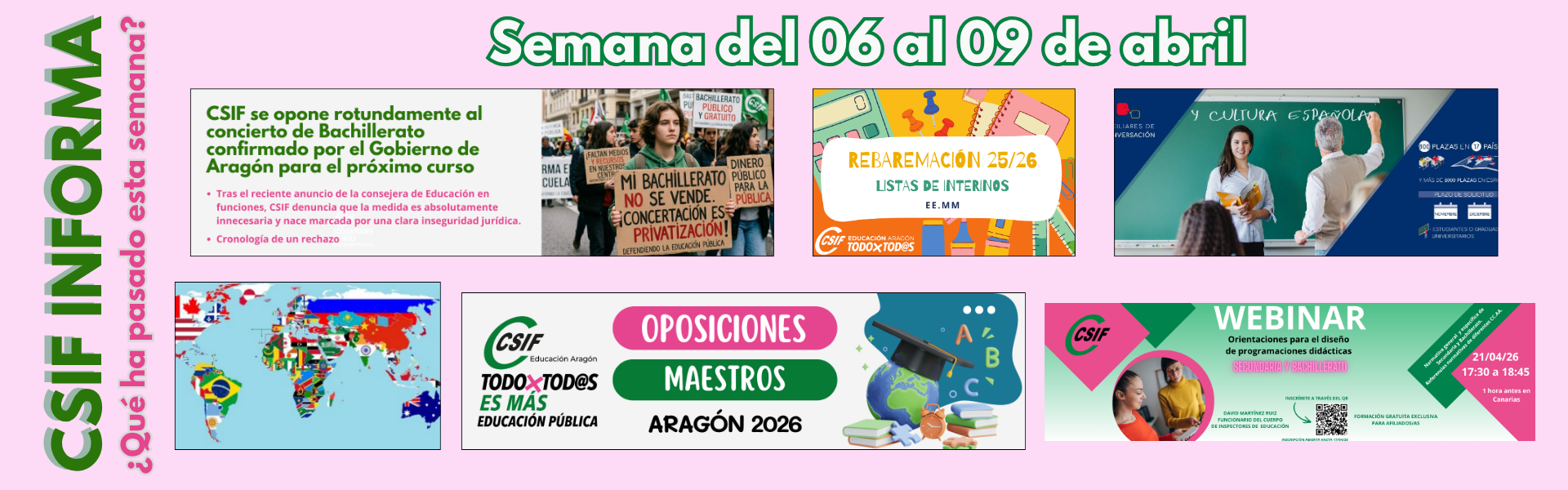 CSIF se opone rotundamente al concierto de Bachillerato confirmado por el Gobierno de Aragón para el próximo curso