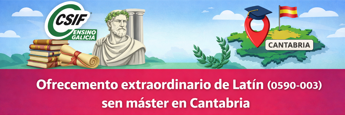 CSIF Enseñanza Cantabria informa da publicación dun ofrecemento extraordinario para cubrir nomeamentos interinos da especialidade de Latín. A principal novidade é que, nesta convocatoria, se permite participar sen acreditar o máster de formación pedagóxica e didáctica.
