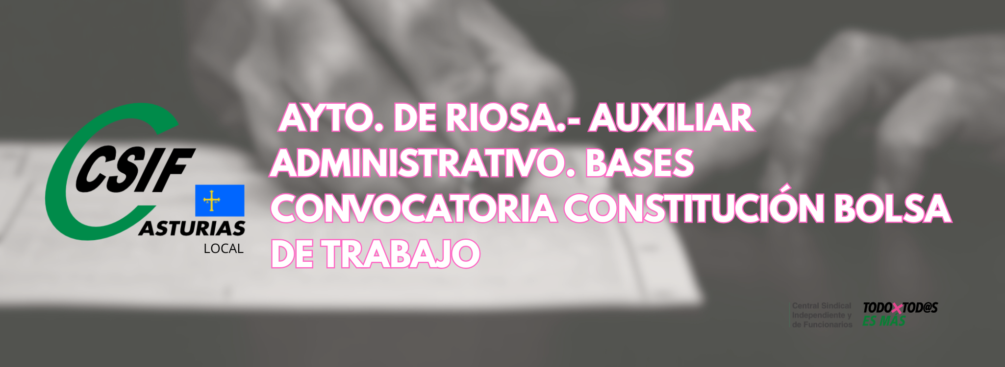 Ayto. de Riosa.- Auxiliar Administrativo. Bases convocatoria constitución bolsa de trabajo