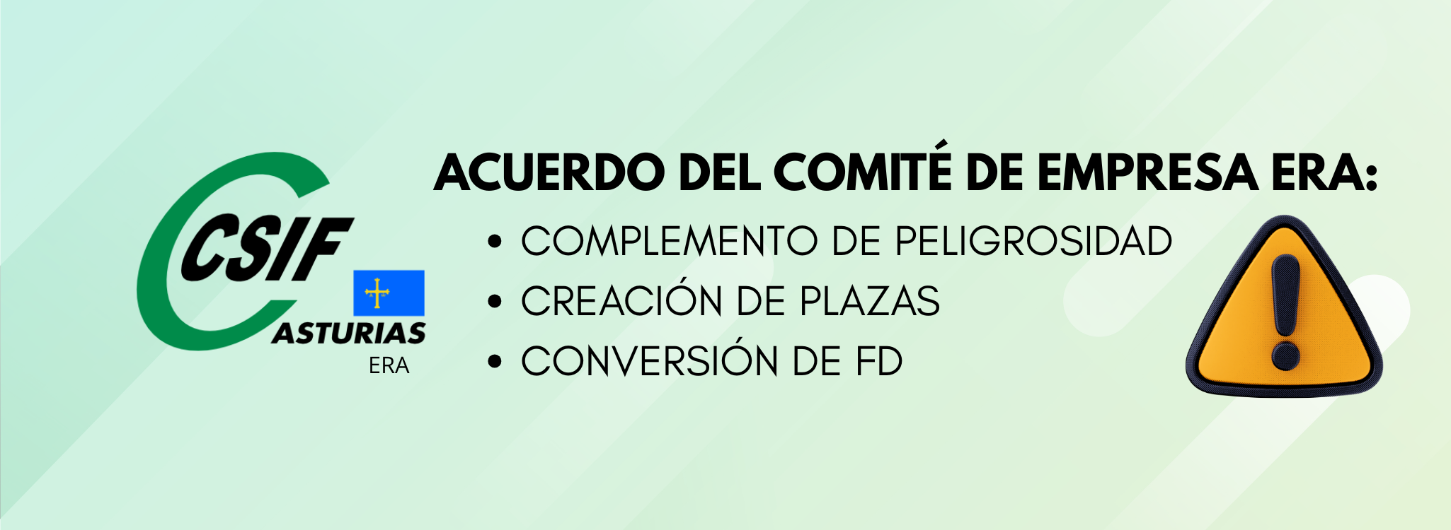 ACUERDO DEL COMITÉ DE EMPRESA ERA: COMPLEMENTO DE PELIGROSIDAD/ CREACIÓN DE PLAZAS/ CONVERSIÓN DE FD