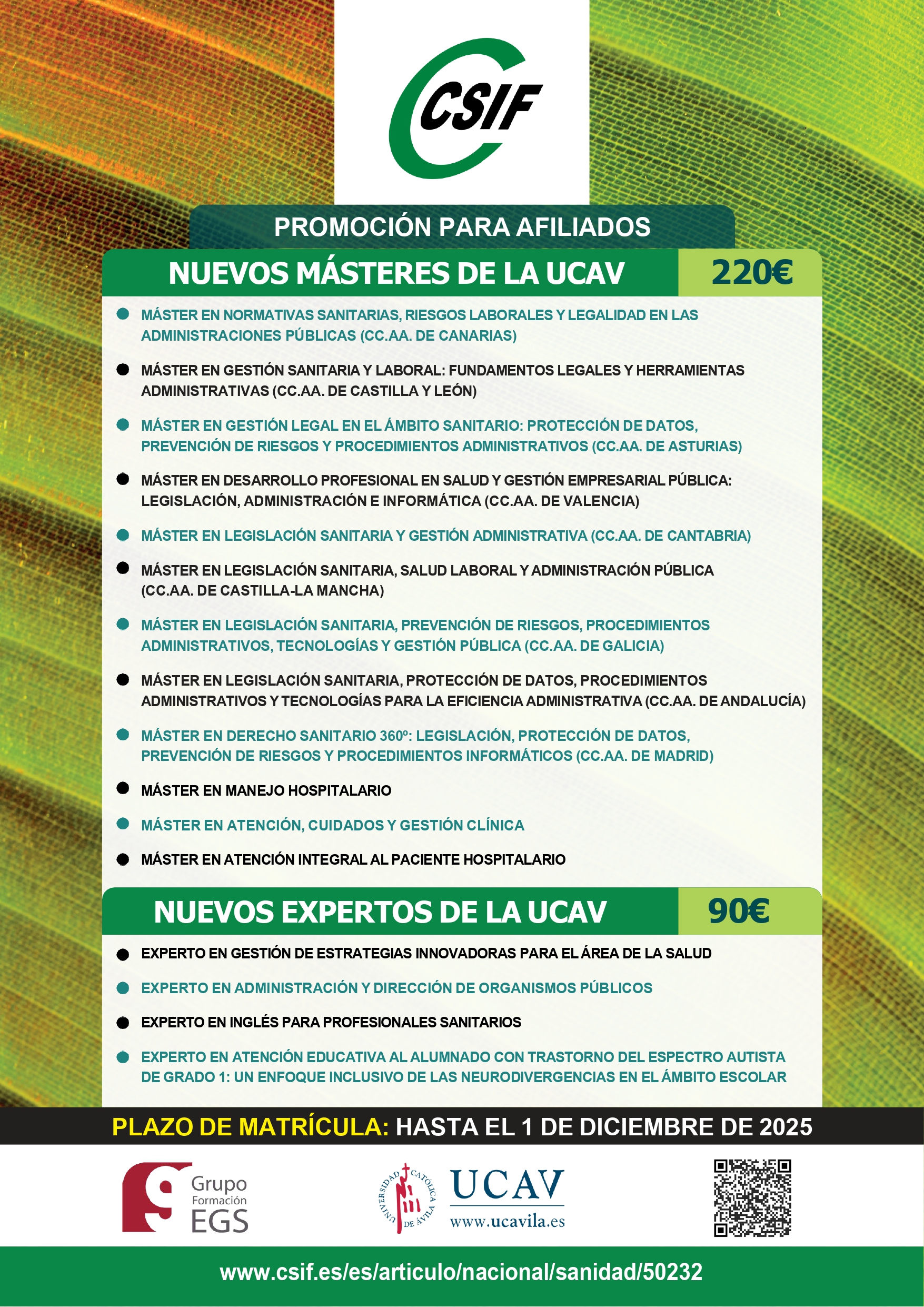 - MÁSTER EN GESTIÓN SANITARIA Y LABORAL: FUNDAMENTOS LEGALES Y HERRAMIENTAS ADMINISTRATIVAS (CC.AA. DE CASTILLA Y LEÓN)