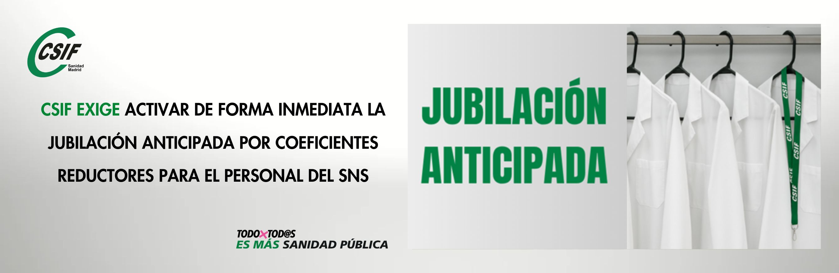 CSIF exige activar de forma inmediata la jubilación anticipada por coeficientes reductores para el personal del SNS