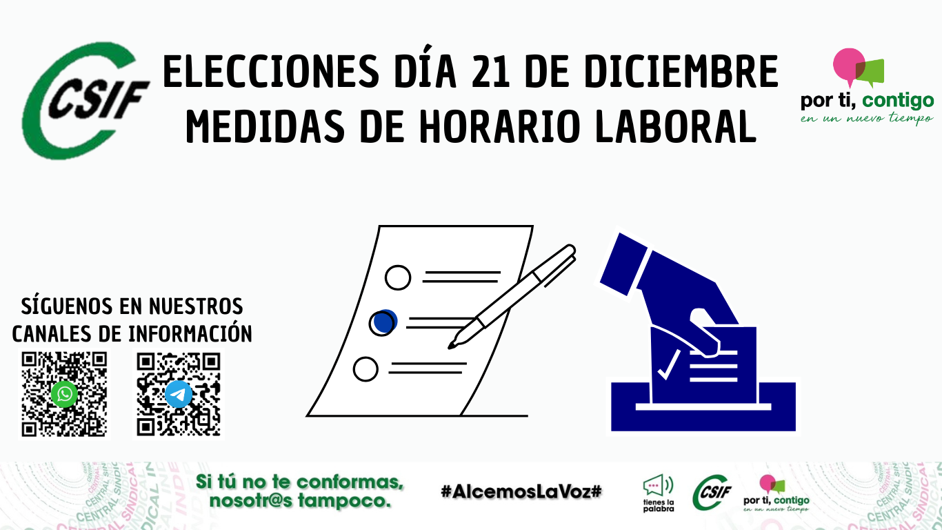 Con objeto de facilitar el ejercicio del derecho fundamental de sufragio en las elecciones convocadas, las medidas respecto al horario laboral y régimen de permisos a aplicar el domingo 21 de diciembre son las siguientes: