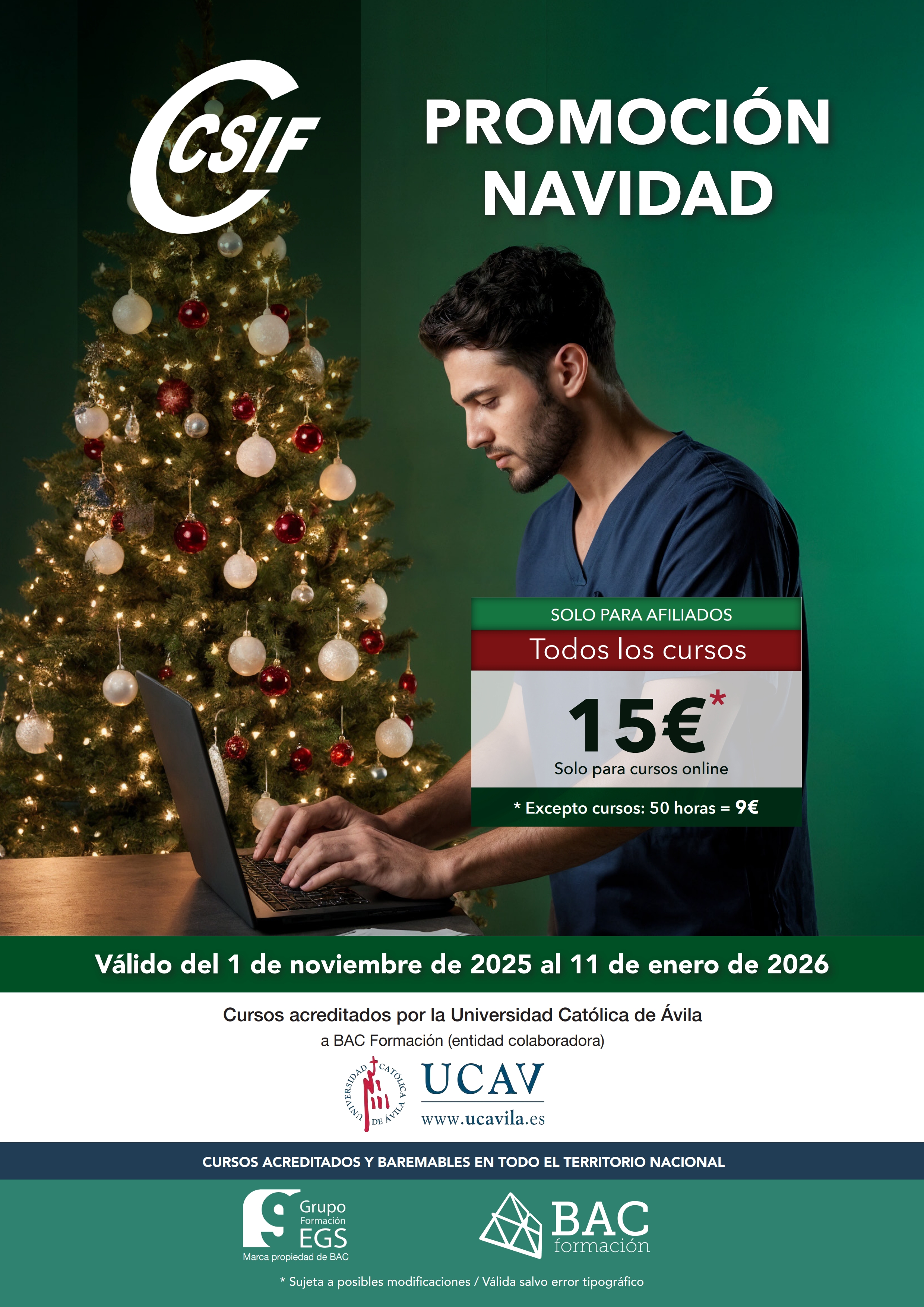 - Contacto para gestión de cursos: formacion.sanidad@csif.es, teléfono 915-987-260.