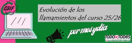 EVOLUCIÓN DE LOS LLAMAMIENTOS DE INTERINOS CURSO 2025/2026. 08 de octubre de 2025.