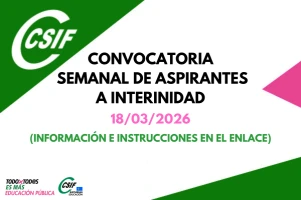 CONVOCATORIA SEMANAL DE ASPIRANTES A INTERINIDAD (18.03.2026)