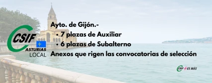Ayto. de Gijón.- 7 plazas de Auxiliar+ 6 plazas de Subalterno: Anexos que rigen las convocatorias de selección. Pendiente publicación BOE
