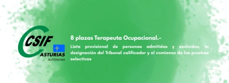 8 plazas Terapeuta Ocupacional.-Lista provisional de personas admitidas y excluidas, la designación del Tribunal calificador y el comienzo de las pruebas selectivas