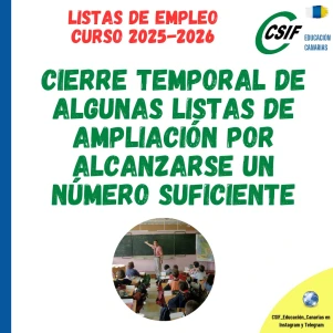 CIERRE TEMPORAL DE ALGUNAS DE LISTAS DE AMPLIACIÓN POR ALCANZARSE UN NÚMERO SUFICIENTE DE CANDIDATOS