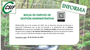 Relación provisional de las personas candidatas de la bolsa de empleo de las categorías de: Gestión Administrativa y Enfermero/a Especialista de Familiar y Comunitaria.