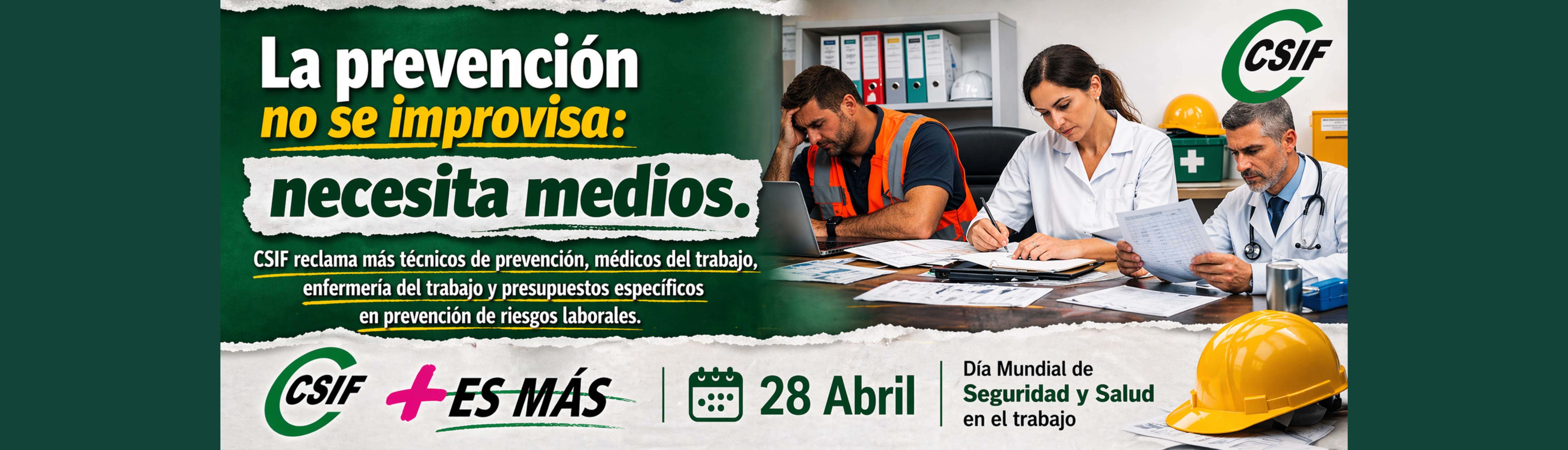 CSIF alerta de un grave problema de salud laboral y reclama más recursos y presupuesto en PRL con motivo del 28 de abril: “La prevención no se improvisa: necesita medios”