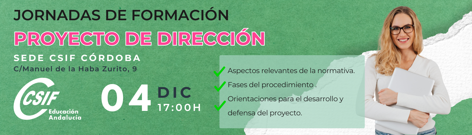 Si eres Director o Directora o tienes aspiraciones a serlo y quieres presentar nuevo Proyecto de Dirección, desde CSIF Educación Córdoba queremos acompañarte y asesorarte en este proceso.