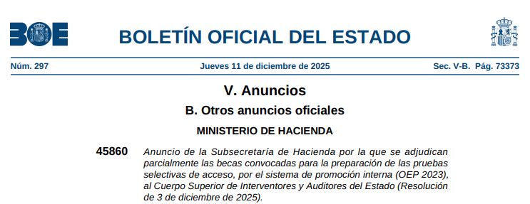 HACIENDA Concesión Becas Preparación promoción interna A1