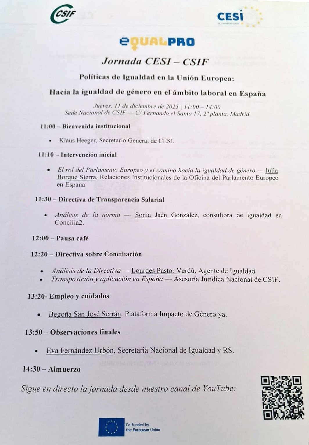 Hoy, Carmen Lecina Berdor, Secretaria de Igualdad y Responsabilidad Social de CSIF Aragón, participo en la jornada “Políticas de Igualdad en la Unión Europea: hacia la igualdad de género en el ámbito laboral en España”, organizada por CESI y CSIF en el marco del proyecto EQUALPRO