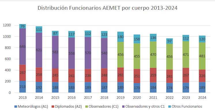 AEMET Evolución Personal Funcionario 2013-2024 y distribución por cuerpos