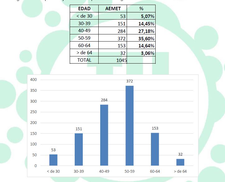 La plantilla está muy envejecida, con más del 53% de los trabajadores con al menos 50 años, similar al de la media de la AGE