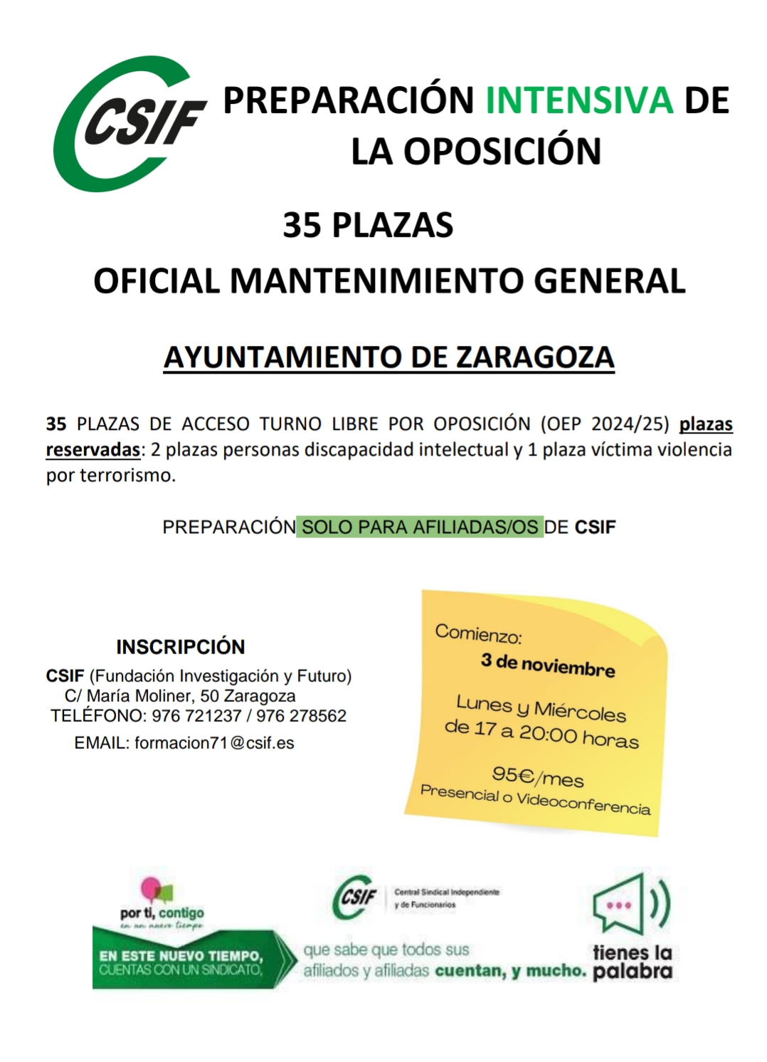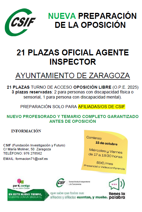 Preparación Oposiciones. Ayuntamiento de Zaragoza