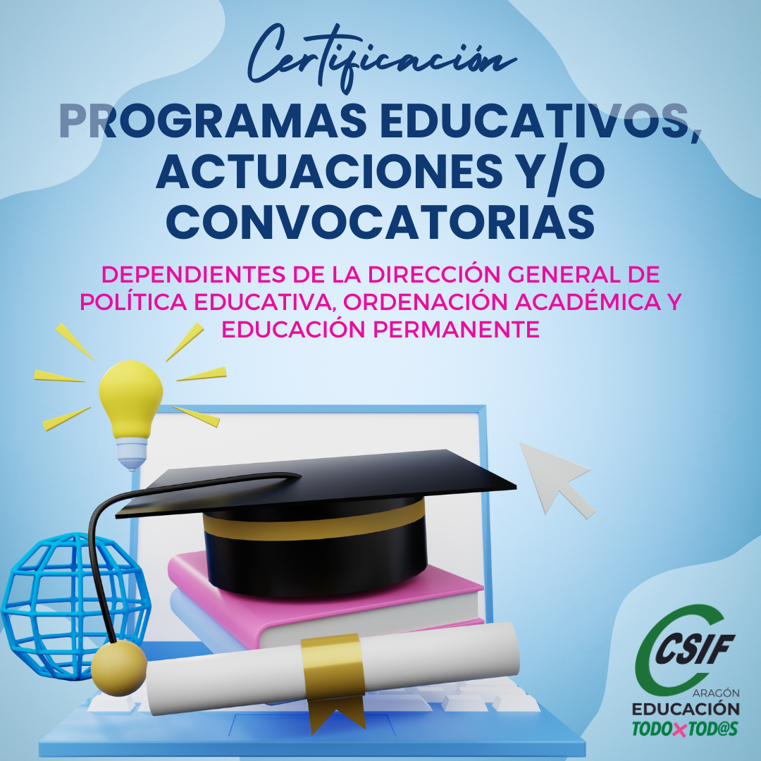 Certificación programas educativos, actuaciones y/o convocatorias dependientes de la Dirección General de Política Educativa, Ordenación Académica y Educación Permanente