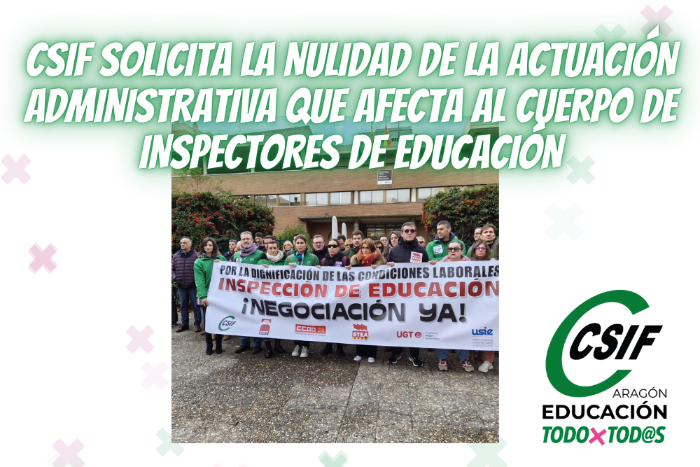CSIF exige que el Gobierno de Aragón corrija de inmediato esta situación, garantizando que los Inspectores de Educación reciban el mismo trato que el resto del personal funcionario de la Administración General, y anuncia que continuará defendiendo sus derechos frente a cualquier actuación que resulte discriminatoria o contraria a derecho.