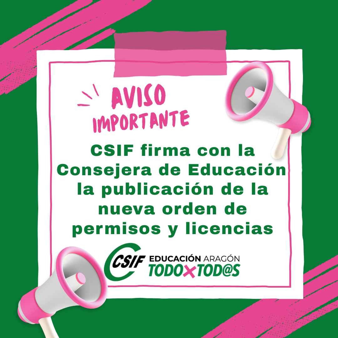 Desde CSIF se valora de manera positiva este avance, que permitirá dotar de mayor claridad, seguridad jurídica y actualización normativa al régimen de permisos y licencias, adaptándolo a las necesidades actuales y facilitando la conciliación personal y familiar de los docentes de Aragón.