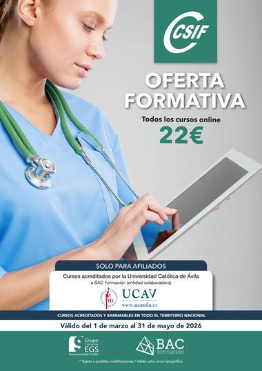 LOS CURSOS OFERTADOS EN ESTA PAGINA SON DE LA PLATAFORMA NACIONAL DE CSIF, ALGUNOS DE ELLOS NO SON VALIDOS PARA EL SERVICIO ARAGONES DE SALUD POR LO QUE,