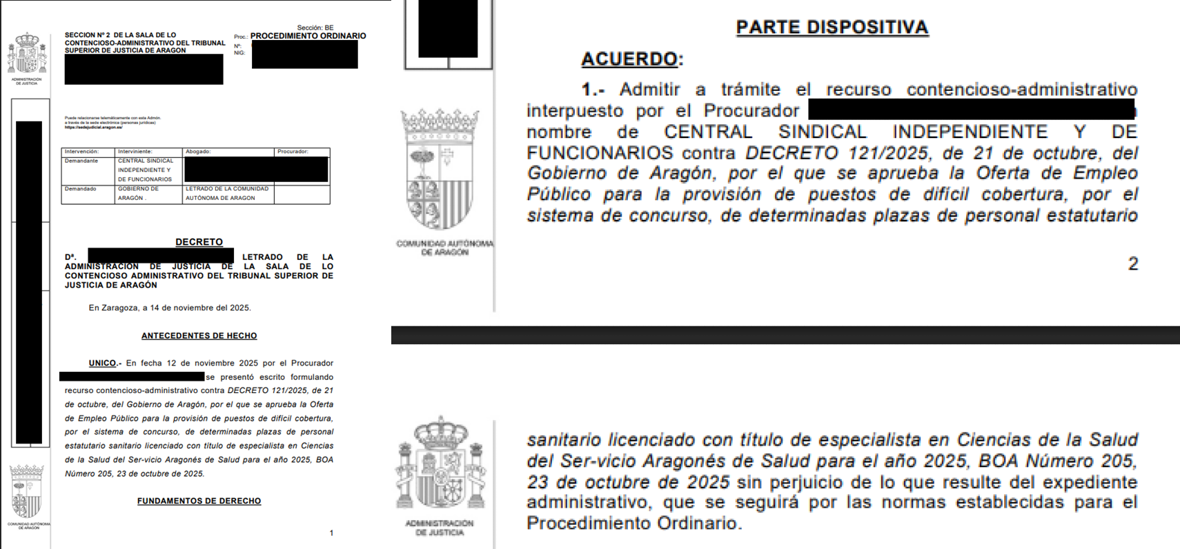 CSIF formula recurso contencioso-administrativo contra los Decretos por los que se aprueban las Ofertas de Empleo Público para la provisión de puestos de difícil cobertura y es admitido a tramite