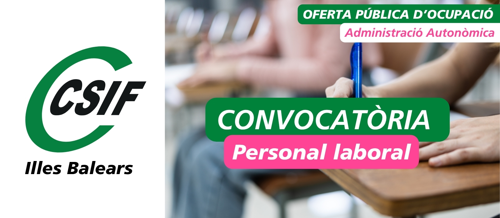 S'ha publicat al BOIB núm. 136, de 14 d'octubre de 2025, la convocatòria dels processos selectius del personal laboral al servei de l'Administració de la Comunitat Autònoma de les Illes Balears en les següents categories: