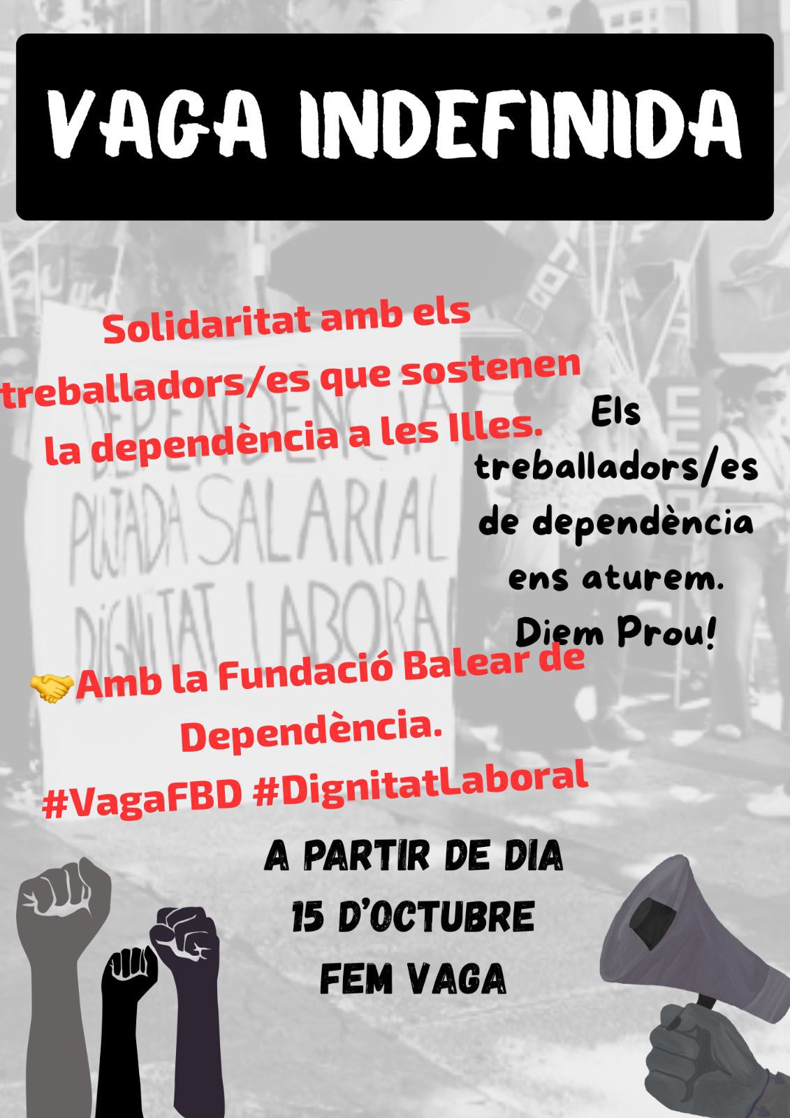 Convocadas concentraciones cada día, de lunes a viernes, a partir de este 15 de octubre, de 11.00 a 12.00 horas, ante la Conselleria de Familia, Bienestar Social y Atención a la Dependencia en Palma.