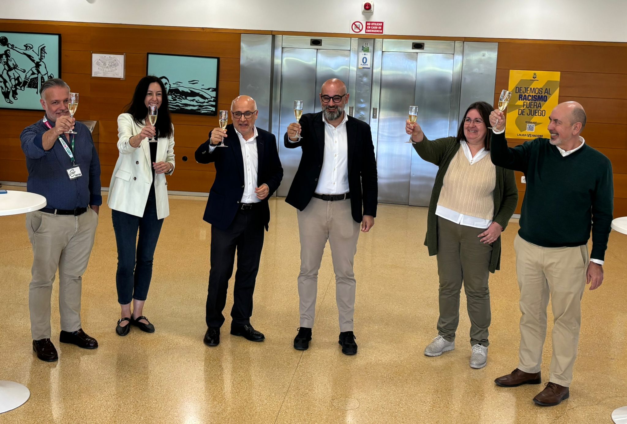 Hoy se ha llevado a cabo un acto, en el Instituto Insular de Deportes (Estadio de Gran Canaria), con la presencia del Presidente del Cabildo, el Presidente del IID, representantes sindicales y el conjunto del personal empleado público del organismo, para brindar por la reciente firma del acuerdo de modificación de la RPT.