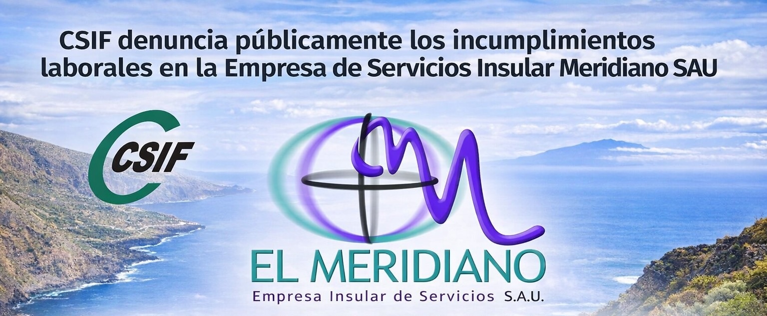 La Central Sindical Independiente y de Funcionarios (CSIF) denuncia públicamente el reiterado incumplimiento de los acuerdos alcanzados entre esta sección sindical y la Empresa de Servicios Insular Meridiano SAU, especialmente en materia de vacaciones, jornadas laborales y organización del trabajo, vulnerando de forma continuada los derechos de la plantilla.