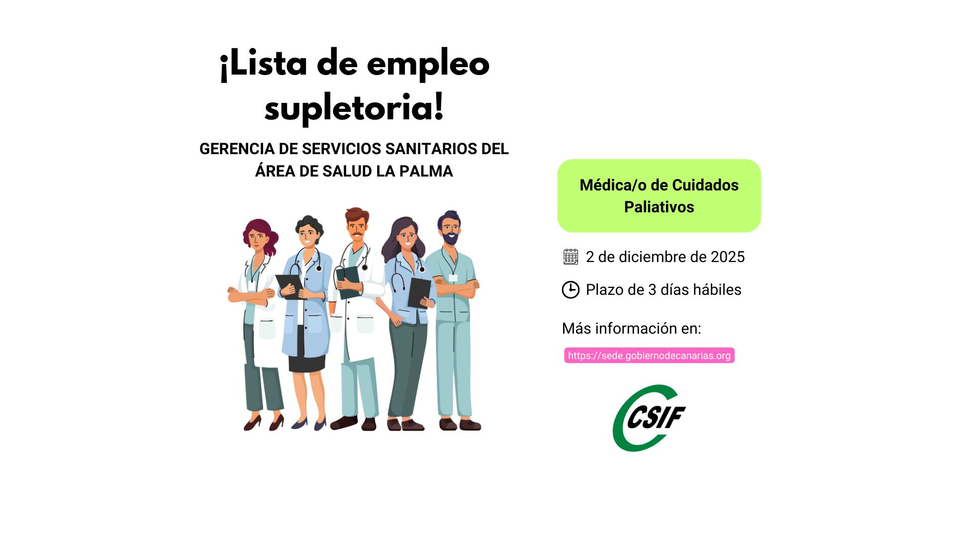 Convocatoria de proceso selectivo para la constitución de LISTA DE EMPLEO SUPLETORIA (Gerencia de Servicios Sanitarios del Área de Salud de La Palma)