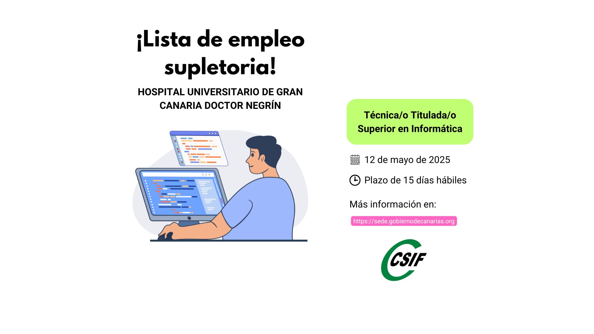 Convocatoria de proceso selectivo para la constitución de LISTA DE EMPLEO SUPLETORIA (Hospital Universitario de Gran Canaria Dr. Negrín)