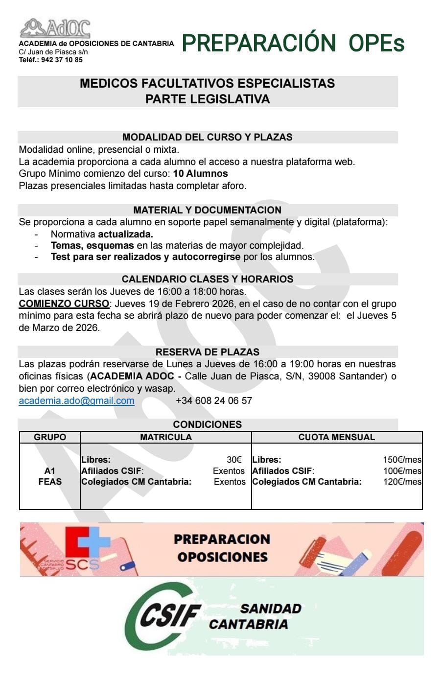 Teléfono / Whatsapp  608 240 657    Email:  academia.adoc@gmail.com        info@academiaadoc.es