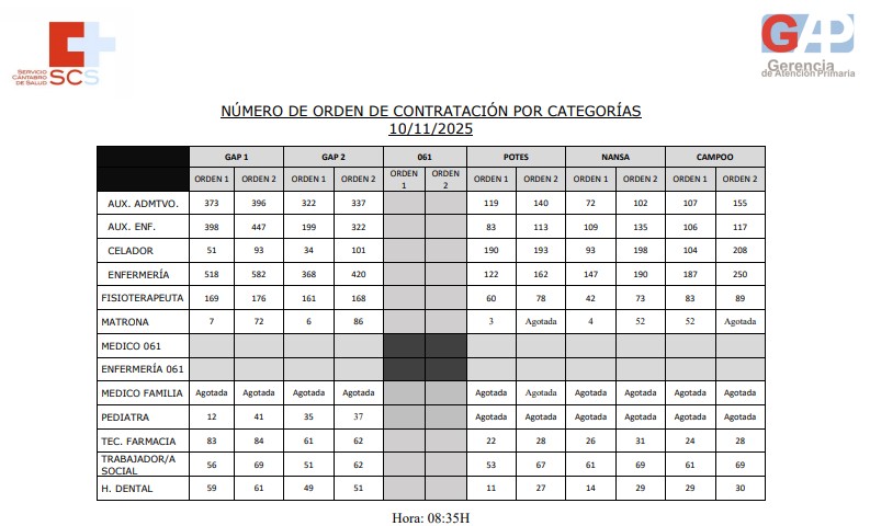 Llamamientos Bolsa de Contratación del SCS. Semana 10 de noviembre de 2025