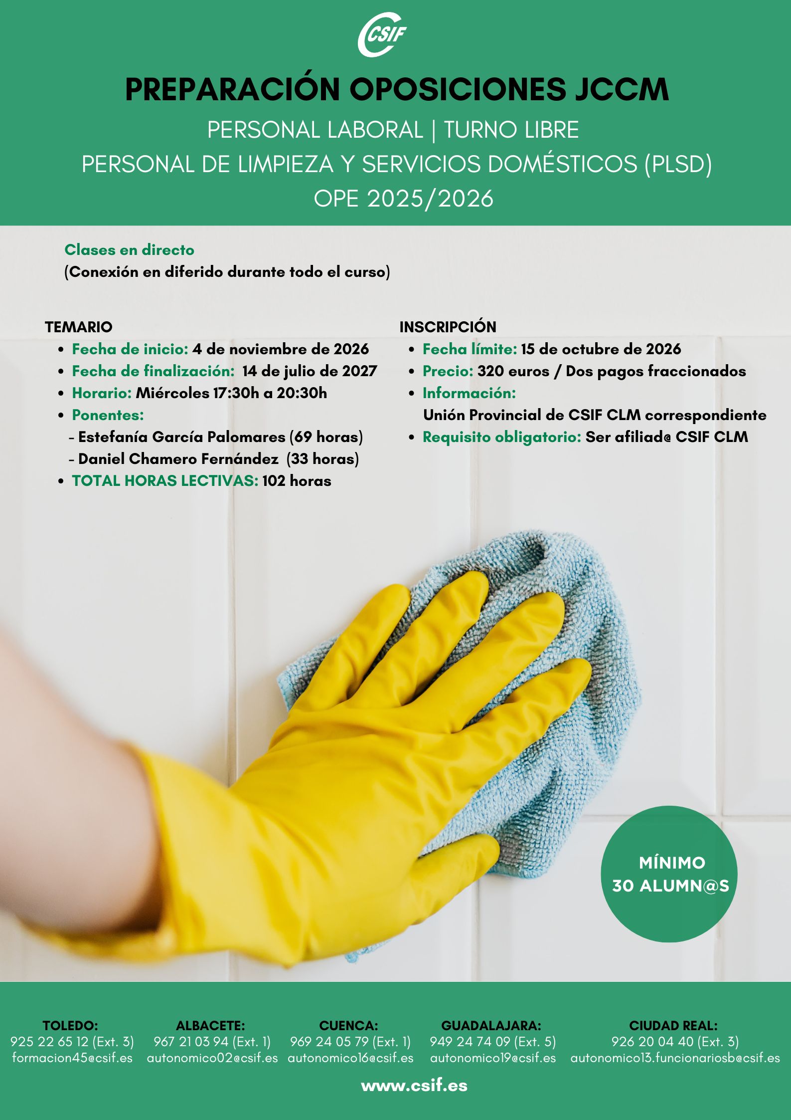 Preparación oposiciones JCCM: Personal de Limpieza y Servicios Domésticos (PLSD)