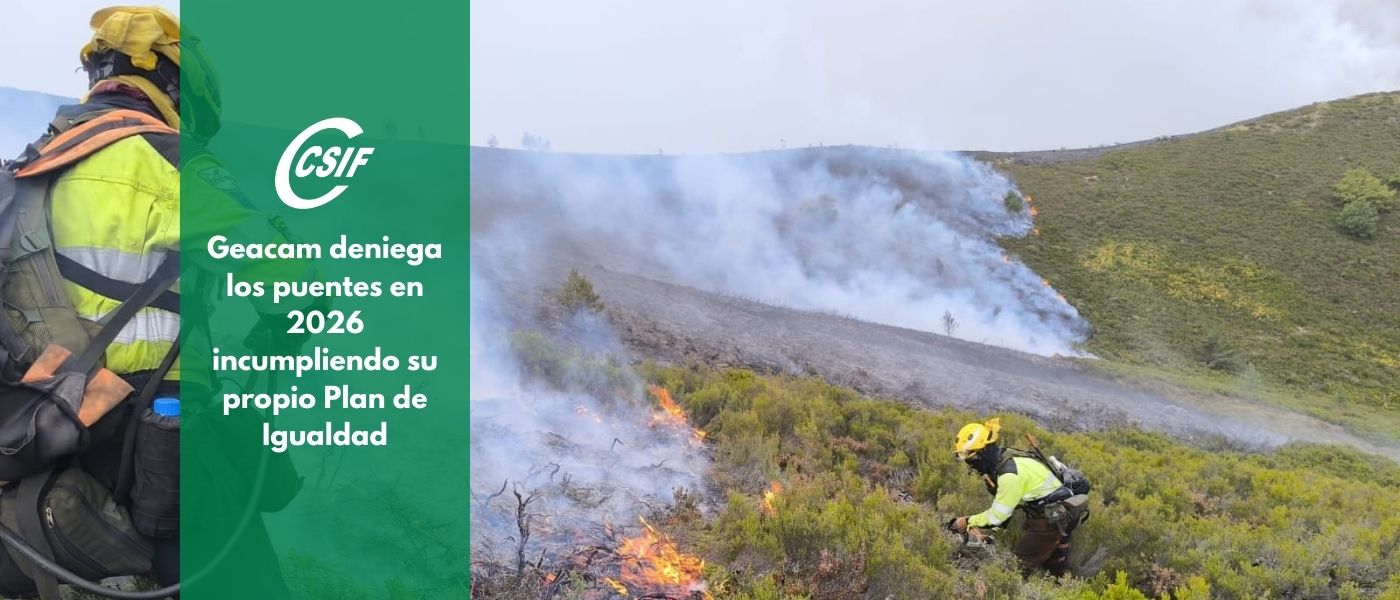 La Central Sindical Independiente y de Funcionarios (CSIF), primer sindicato en la Mesa General de Función Pública de Castilla-La Mancha, denuncia que la Gerencia de la Empresa Pública de Gestión Ambiental de Castilla-La Mancha (Geacam) ha suprimido los días de puente en 2026, lo que incumple el Plan de Igualdad 2025-2028 firmado por el propio ente público.