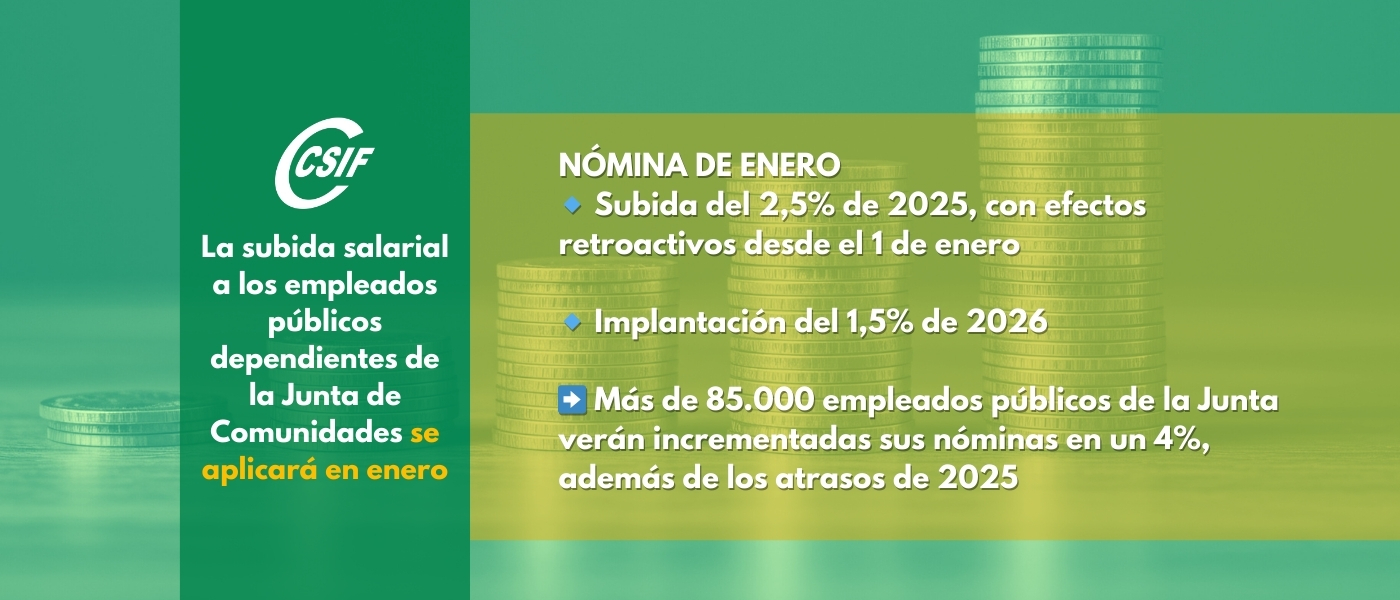 -Más de 85.000 empleados públicos dependientes de la Junta de Comunidades verán incrementadas en breve sus nóminas un 4%, además de los retrasos correspondientes a 2025