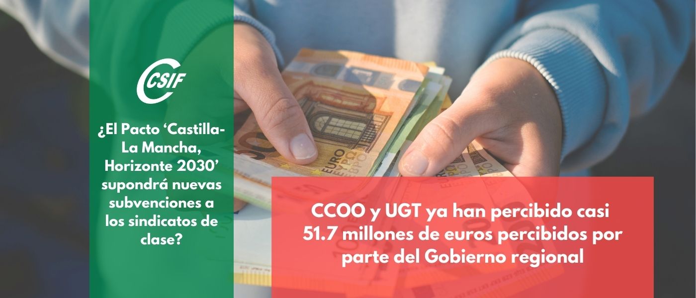 CSIF pregunta si el Pacto ‘Castilla-La Mancha, Horizonte 2030’ supondrá nuevas subvenciones a los sindicatos de clase