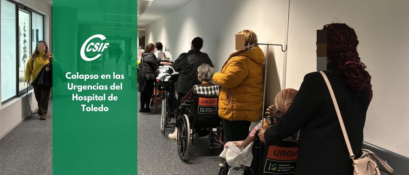 La Central Sindical Independiente y de Funcionarios (CSIF) vuelve a denunciar la situación de colapso que sufre el Servicio de Urgencias del Hospital Universitario de Toledo (HUT), que esta mañana mantiene a 74 pacientes a la espera de ingreso.