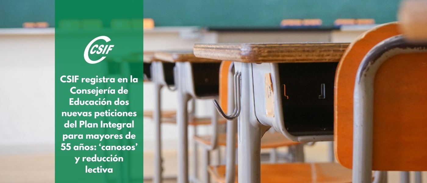 CSIF registra en la Consejería de Educación dos nuevas peticiones del Plan Integral para mayores de 55 años: ‘canosos’ y reducción lectiva