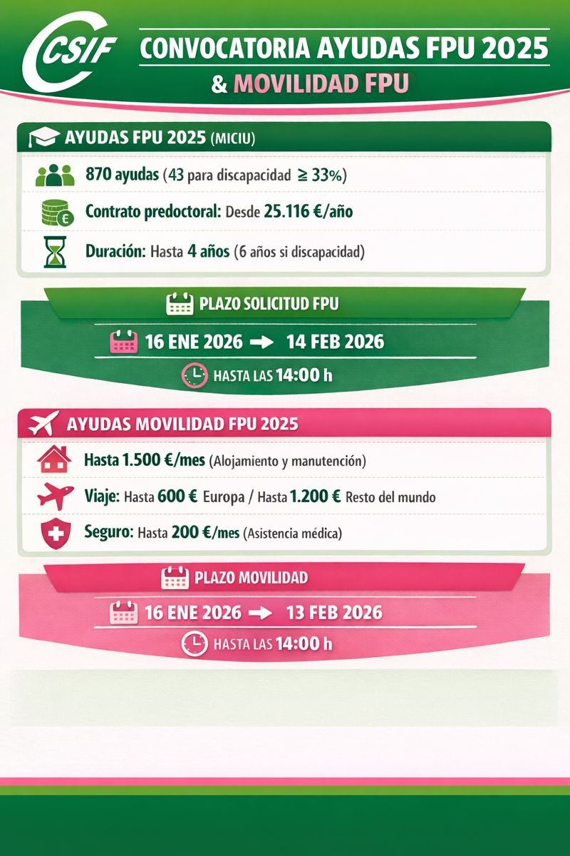 Convocatoria de Ayudas FPU 2025 y Ayudas Complementarias de Movilidad FPU.