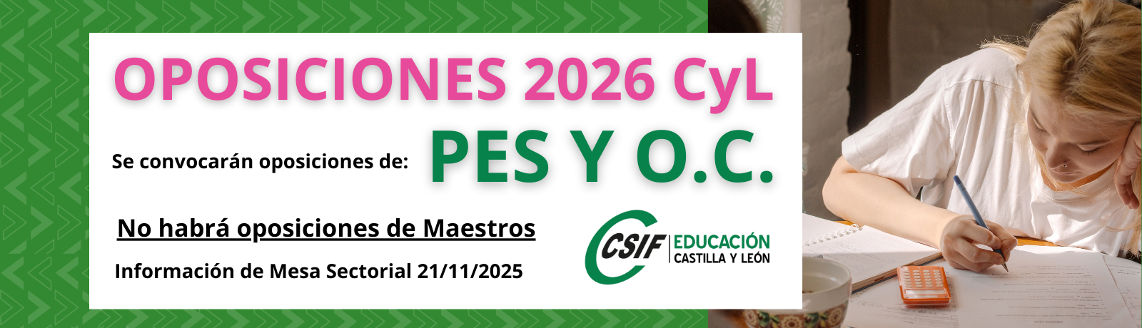 CSIF INFORMA: En 2026 se convocarán oposiciones de Secundaria y O.C. en CyL. No habrá oposiciones de Maestros.